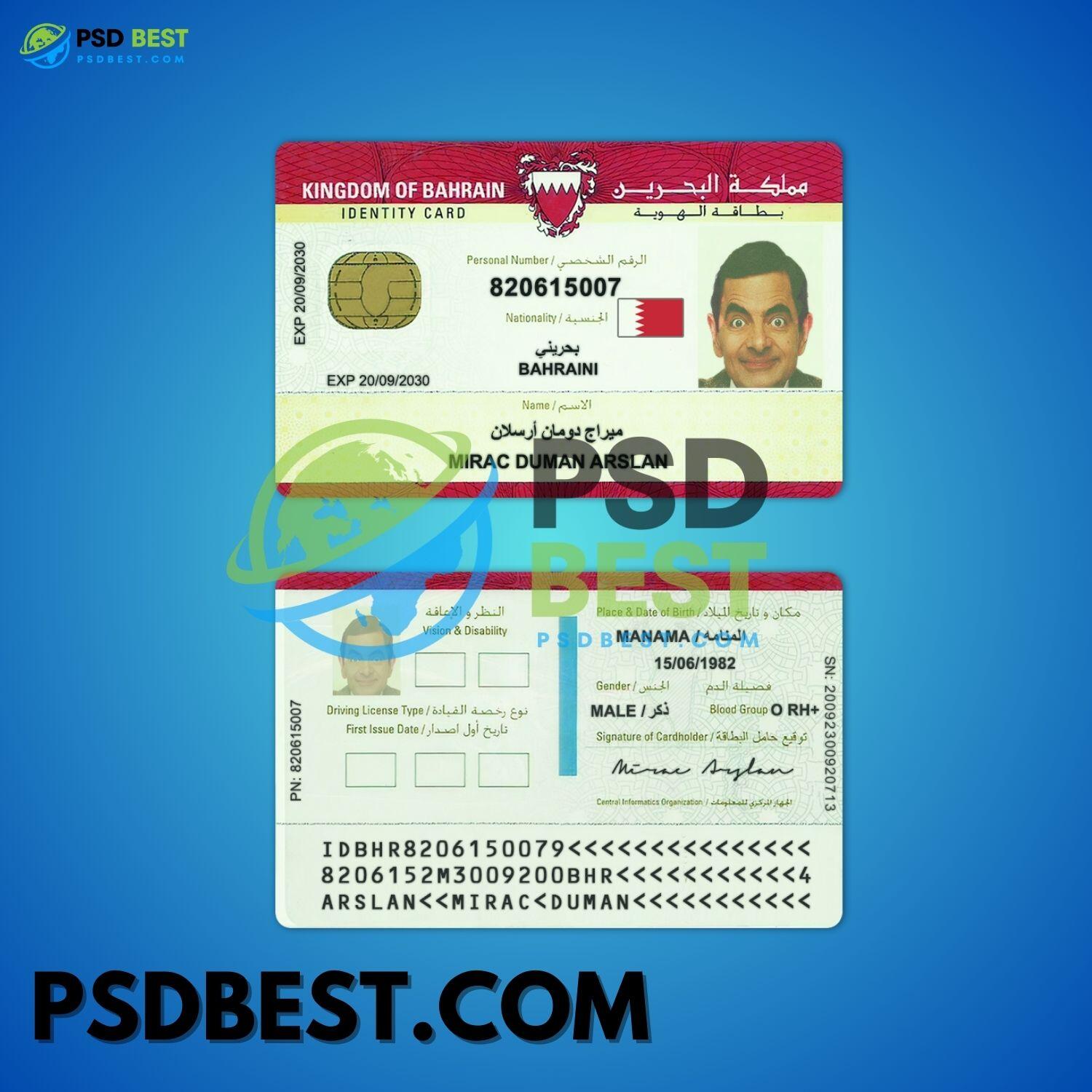 Bahrain Fake ID Card Fully Editable PSD Template