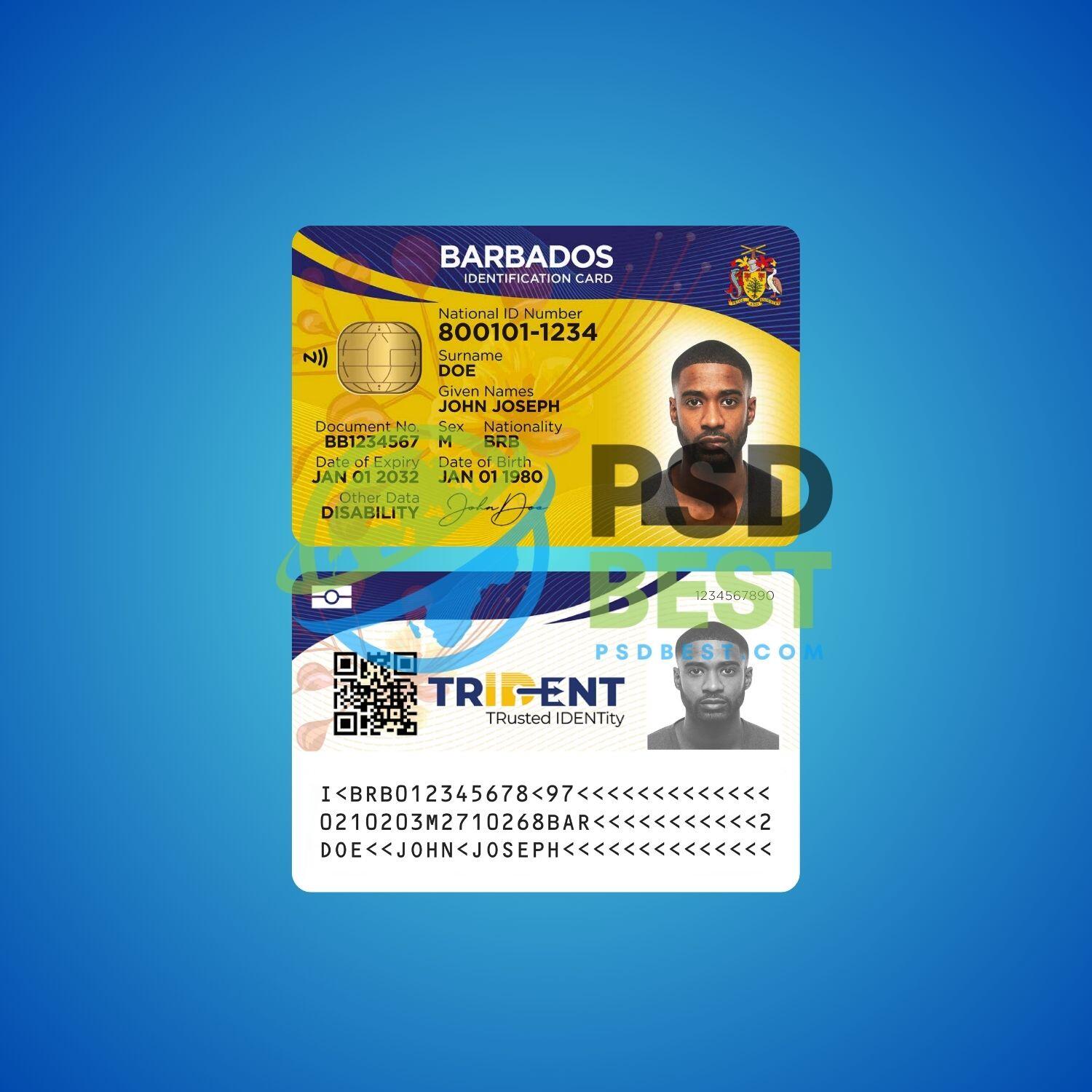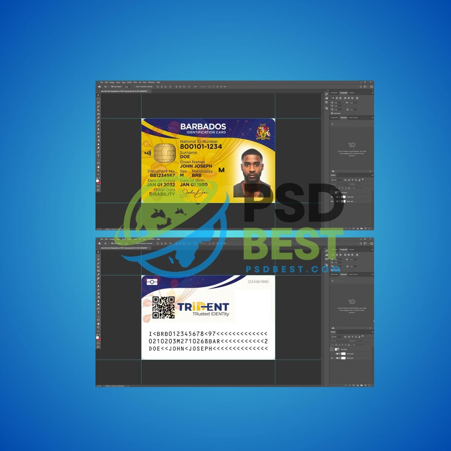 Barbados ID Card Templates in PSD Format
