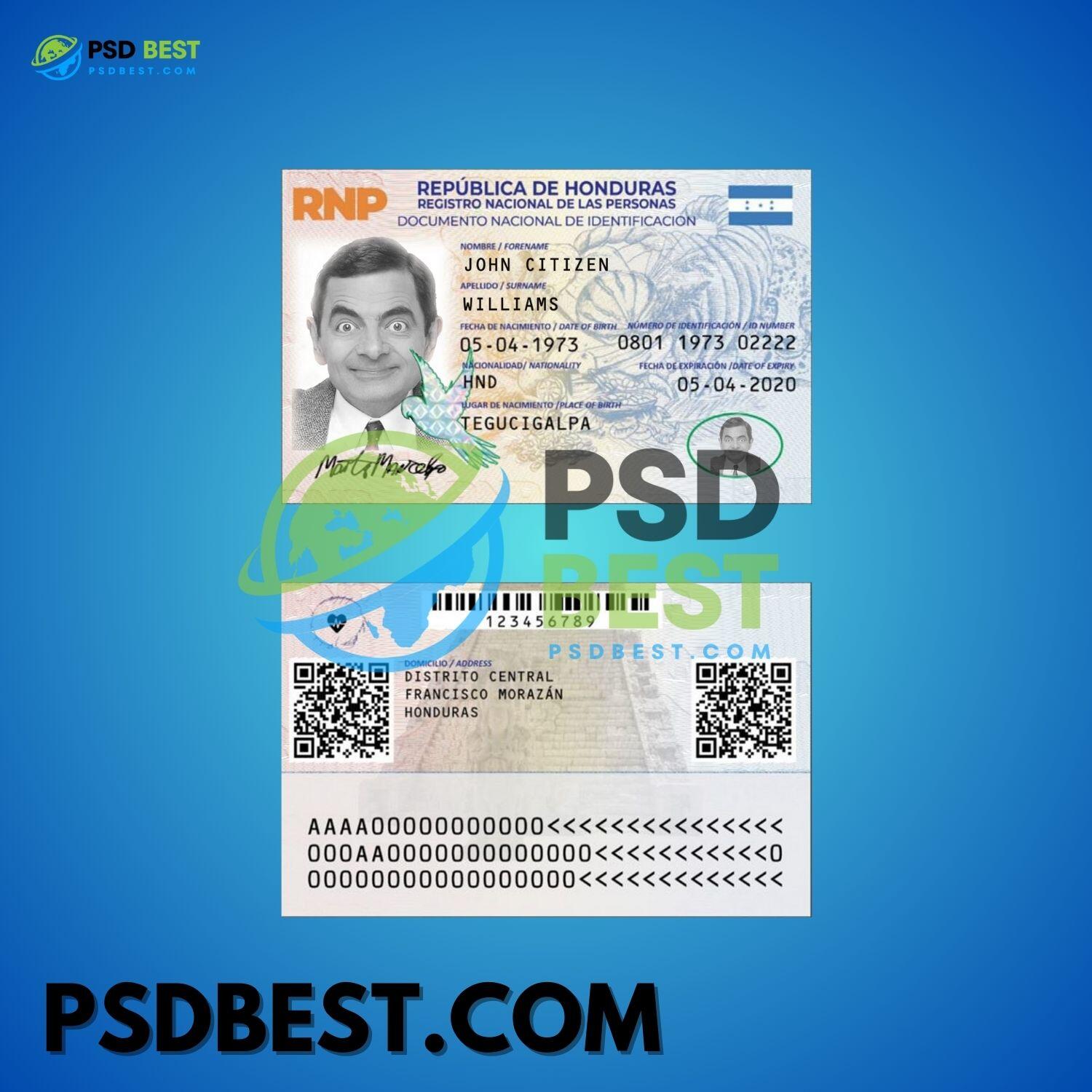 Honduras Fake ID Card Fully Editable PSD Template