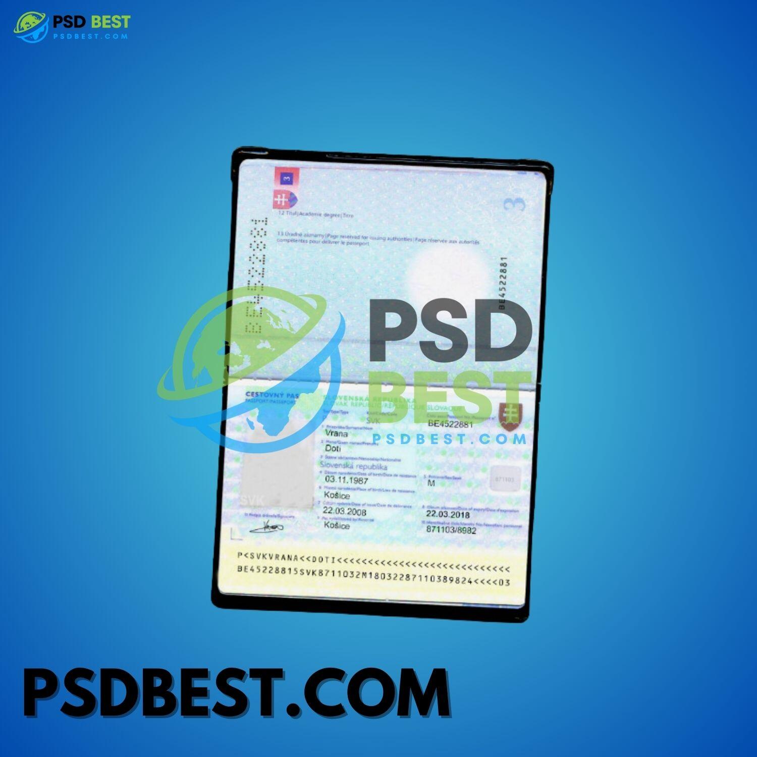 Slovakia Passport Fully Editable Template in PSD Format V2
