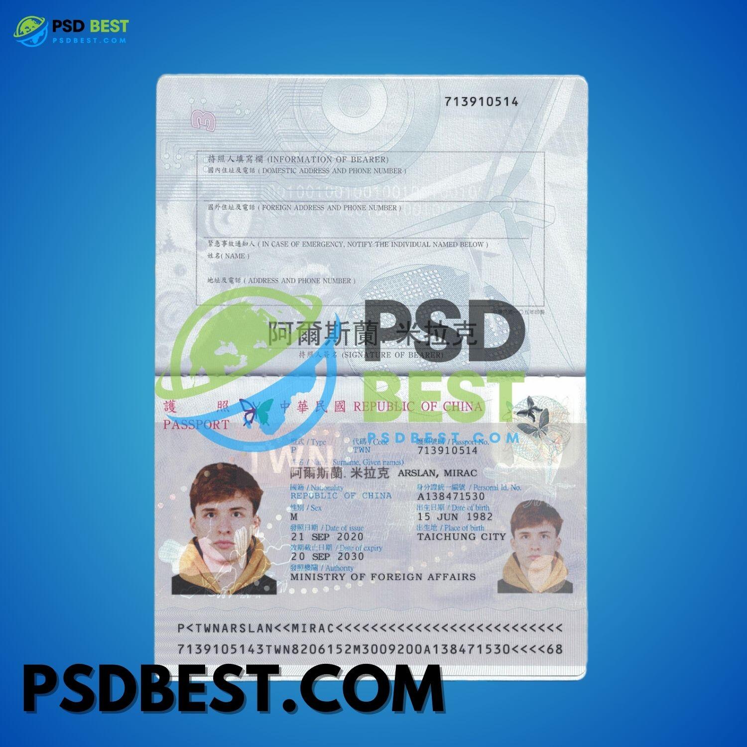 Taiwan Passport Fully Editable Template in PSD Format V2