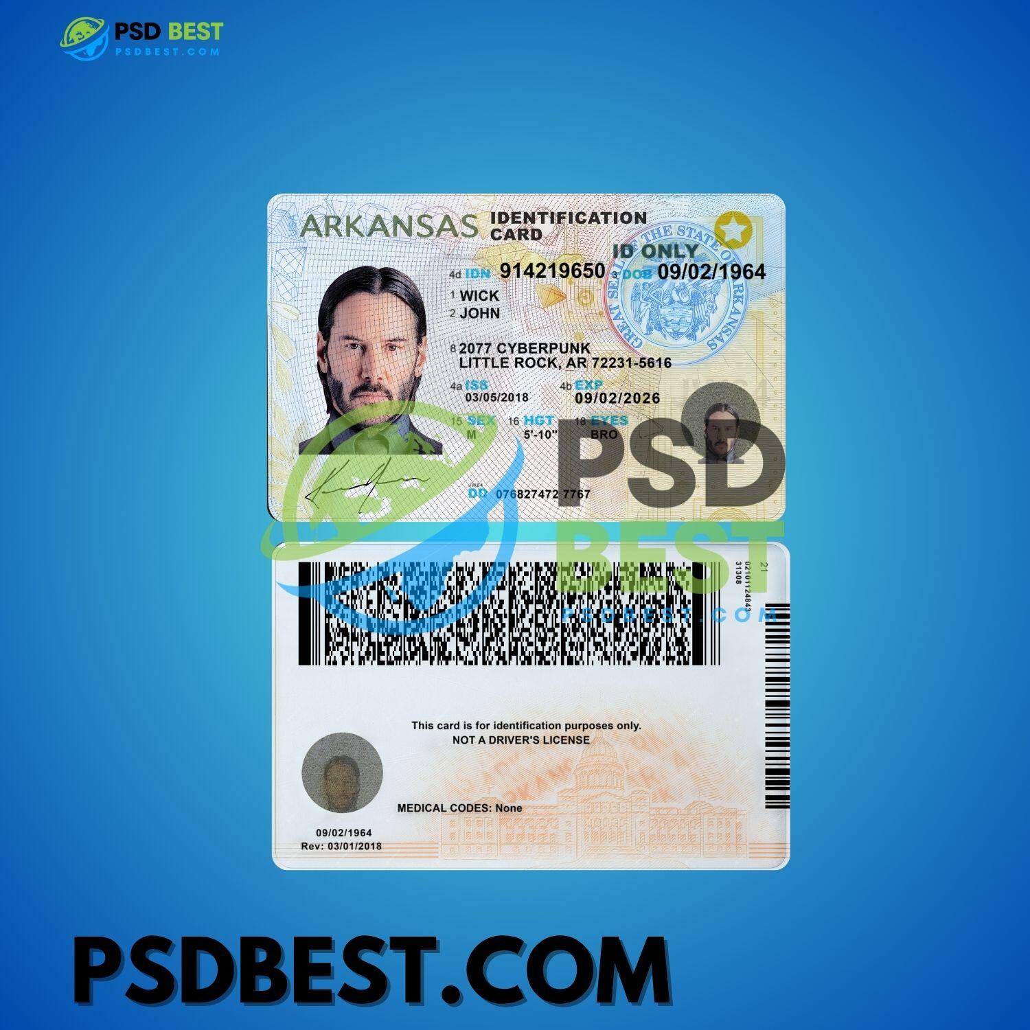 USA Arkansas ID Card PSD Templates